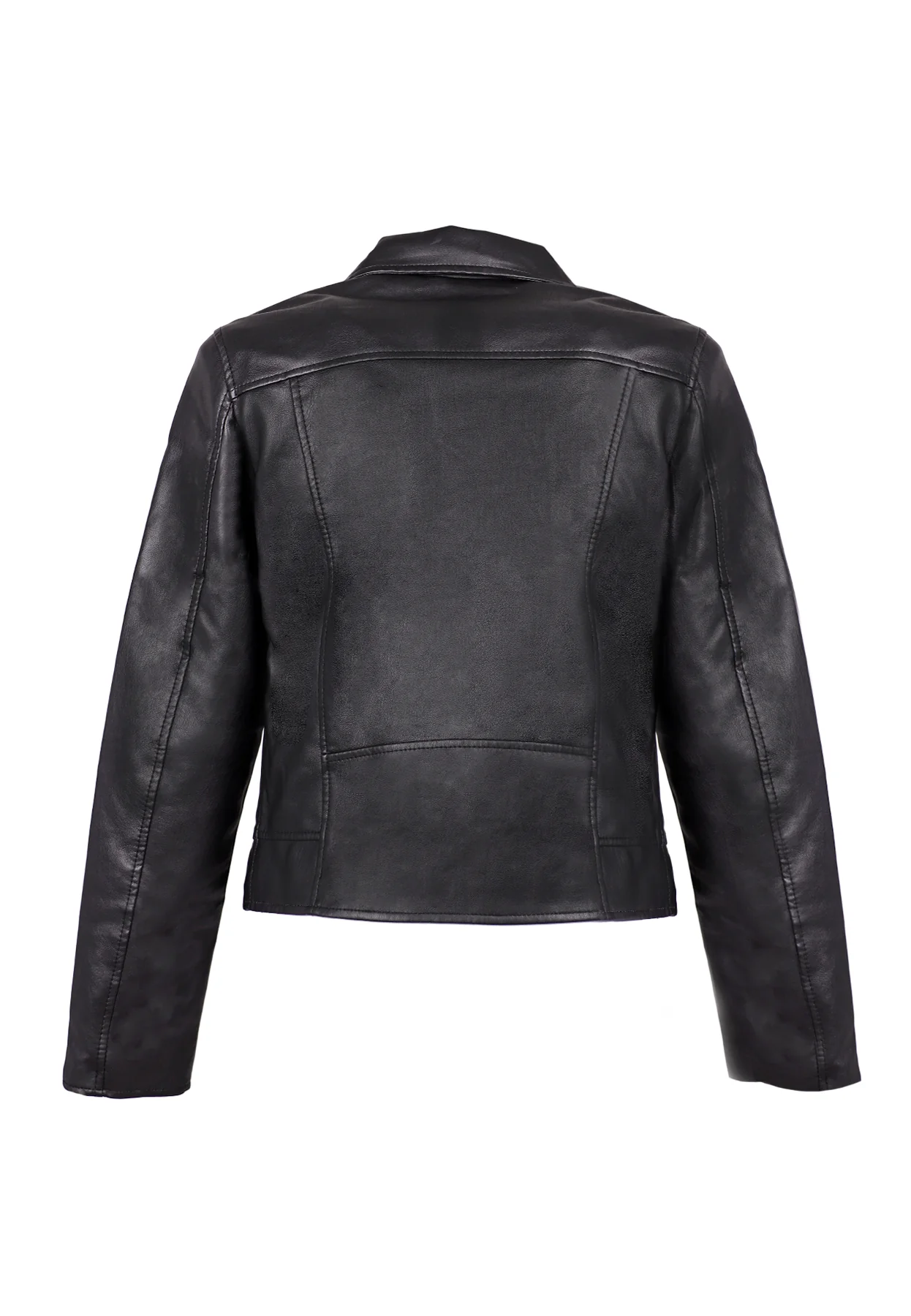 La giacca biker nera in ecopelle modello Y4005 è un must-have per chi ama uno stile deciso e sempre attuale. Il taglio corto e la zip asimmetrica danno un tocco grintoso, mentre la finitura morbida la rende comoda da indossare ogni giorno.