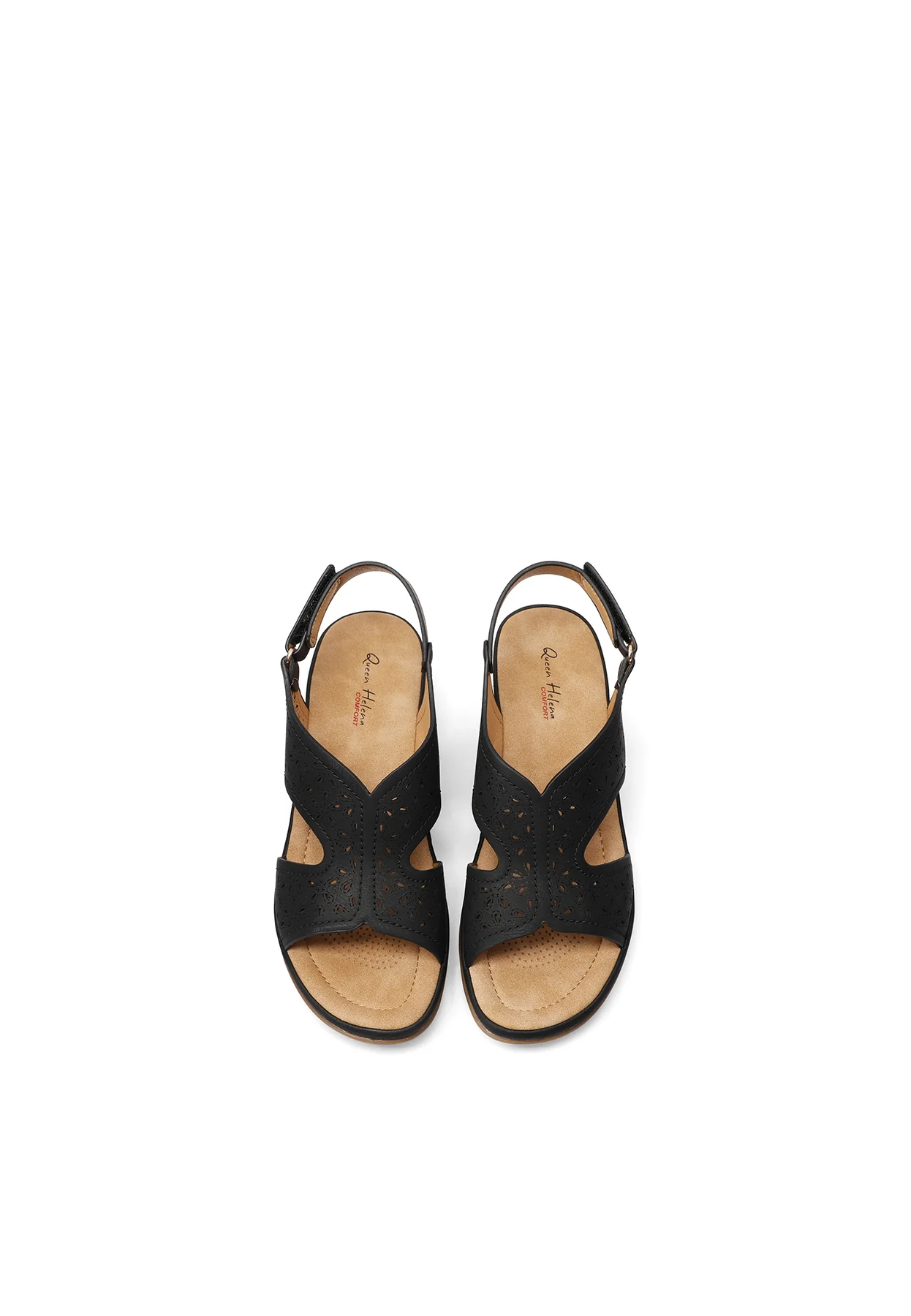 Scopri l'eleganza e il comfort dei nostri sandali comodi, caratterizzati da due fasce incrociate in ecopelle traforata, un tacco a zeppa alto 5 cm e un sottopiede Ortholite.