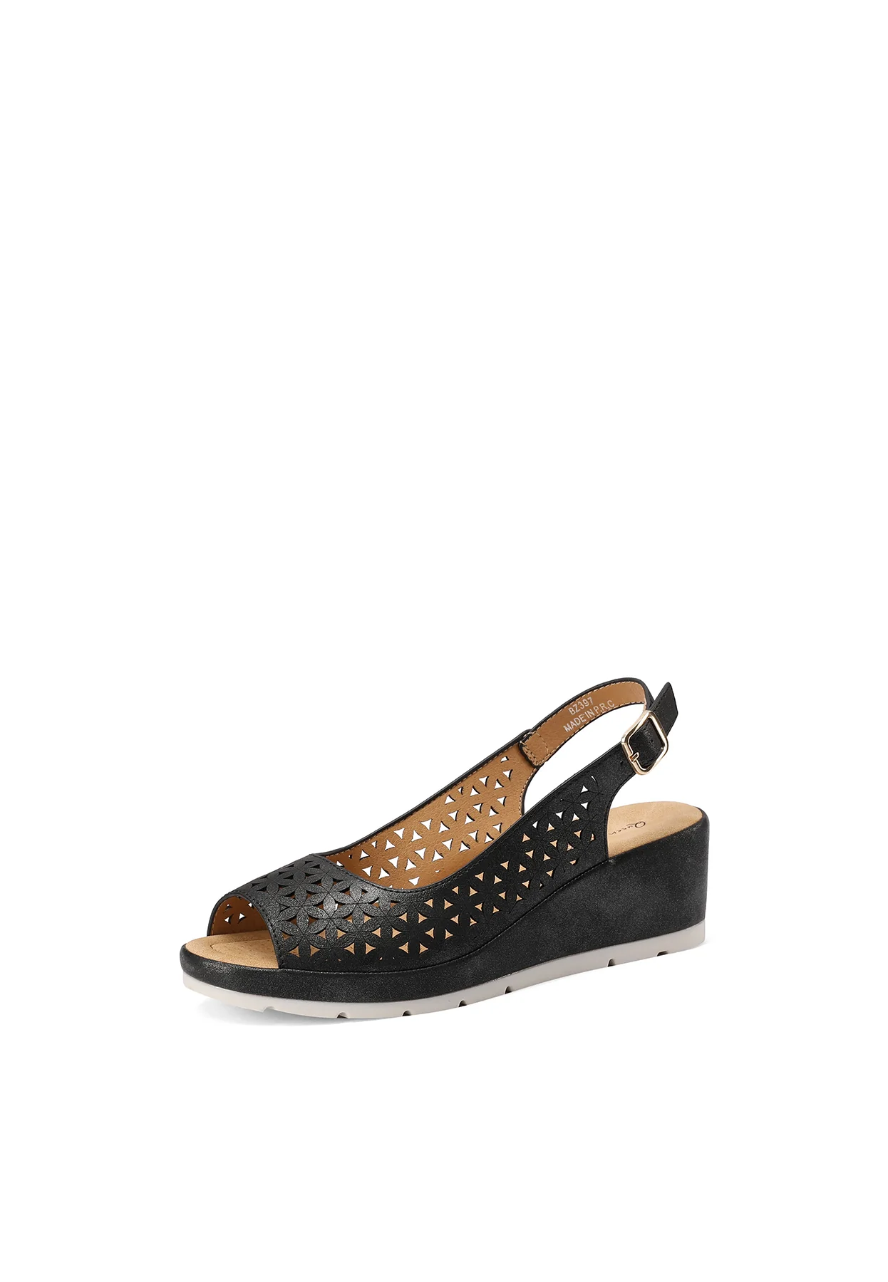 Rinfresca il tuo stile estivo con i nostri eleganti sandali con tomaia traforata in ecopelle. Con una zeppa alta 5,5 cm, questi sandali ti offrono la combinazione perfetta di altezza e comfort, permettendoti di affrontare le giornate con un tocco di glamour.