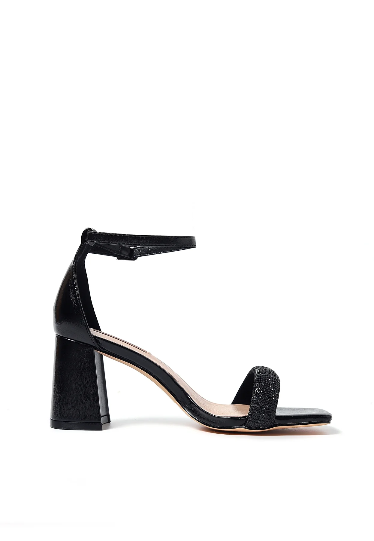 Sandali da donna eleganti a fascia stretta con tacco da 7,5 cm realizzati in ecopelle. Dècolletè con cinturino alla caviglia, suola in gomma e sottopiede in vera pelle. Calzata regolare.