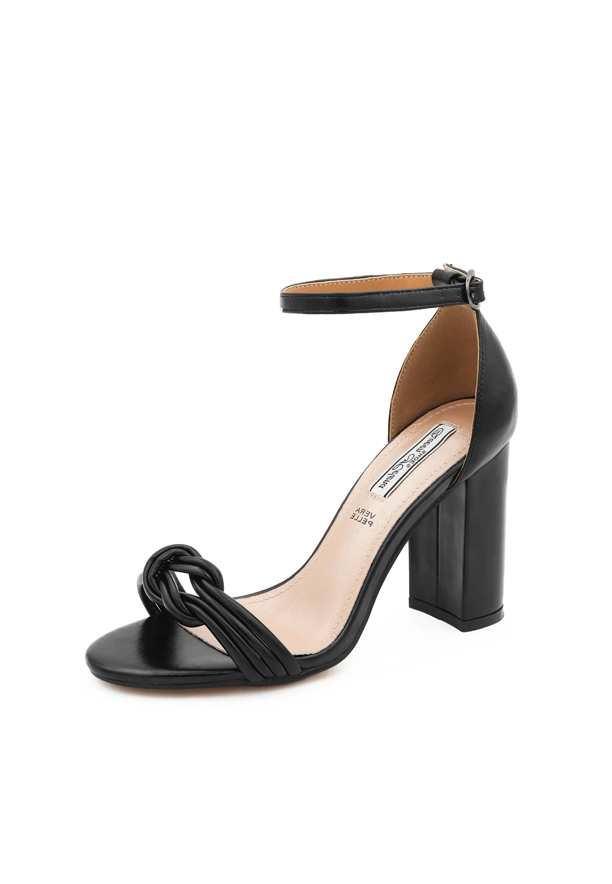 Sandali da donna con tacco da 9 cm realizzati in ecopelle. Chiusura con cinturino alla caviglia. Sottopiede in vera pelle. Suola in gomma. Calzata regolare.