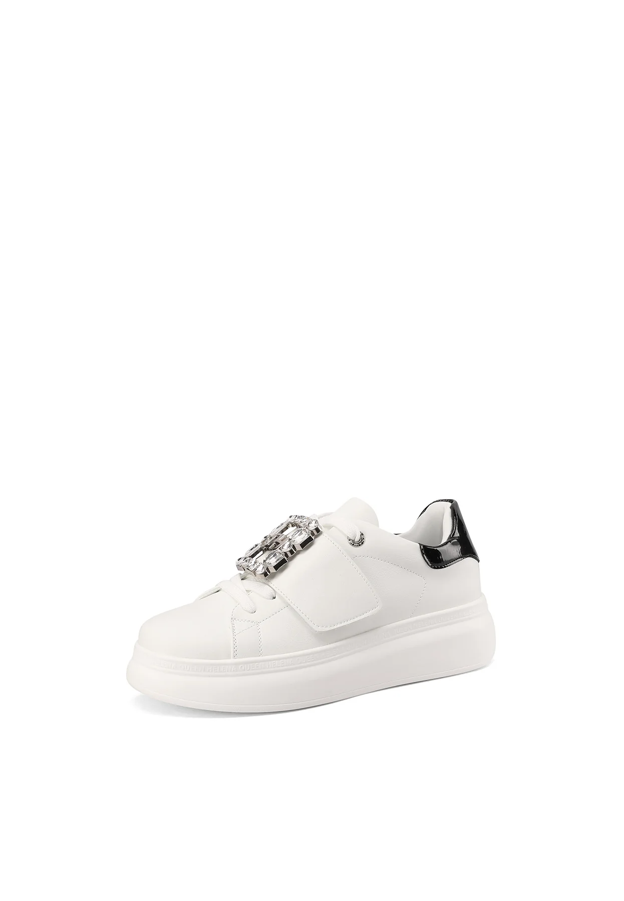 Questo modello si distingue per avere sopra i lacci una fascia con strappo impreziosita da una placca con gioielli decorativi, aggiungendo un tocco di glamour al tuo look quotidiano.