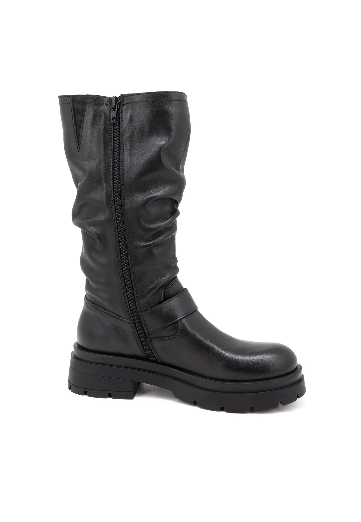 Lo stivale modello QH-22 S-277, realizzato in vera pelle, si distingue per il suo gambale morbido e leggermente arricciato, che dona un aspetto casual e contemporaneo perfetto per accompagnare look versatili e dinamici. Le due fibbie laterali, una alta e una centrale, aggiungono carattere e definiscono il design con un tocco biker moderno.