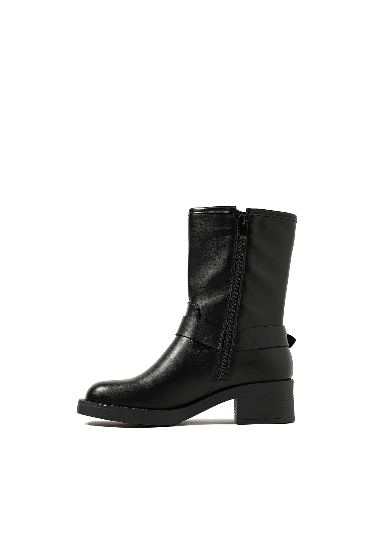 Gli stivaletti biker neri con fibbie e anello modello X30-116 combinano un'estetica rock con una calzata pratica e confortevole. Il gambale medio presenta due fibbie superiori e un grande anello laterale che aggiunge un dettaglio deciso e iconico, perfetto per look urban dall’impatto forte.
