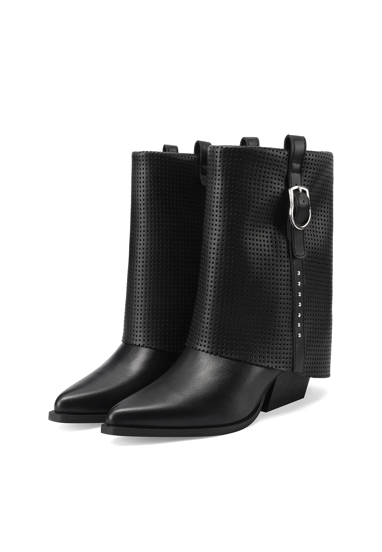 Stivaletti biker traforati con fibbia e tacco basso X34-63