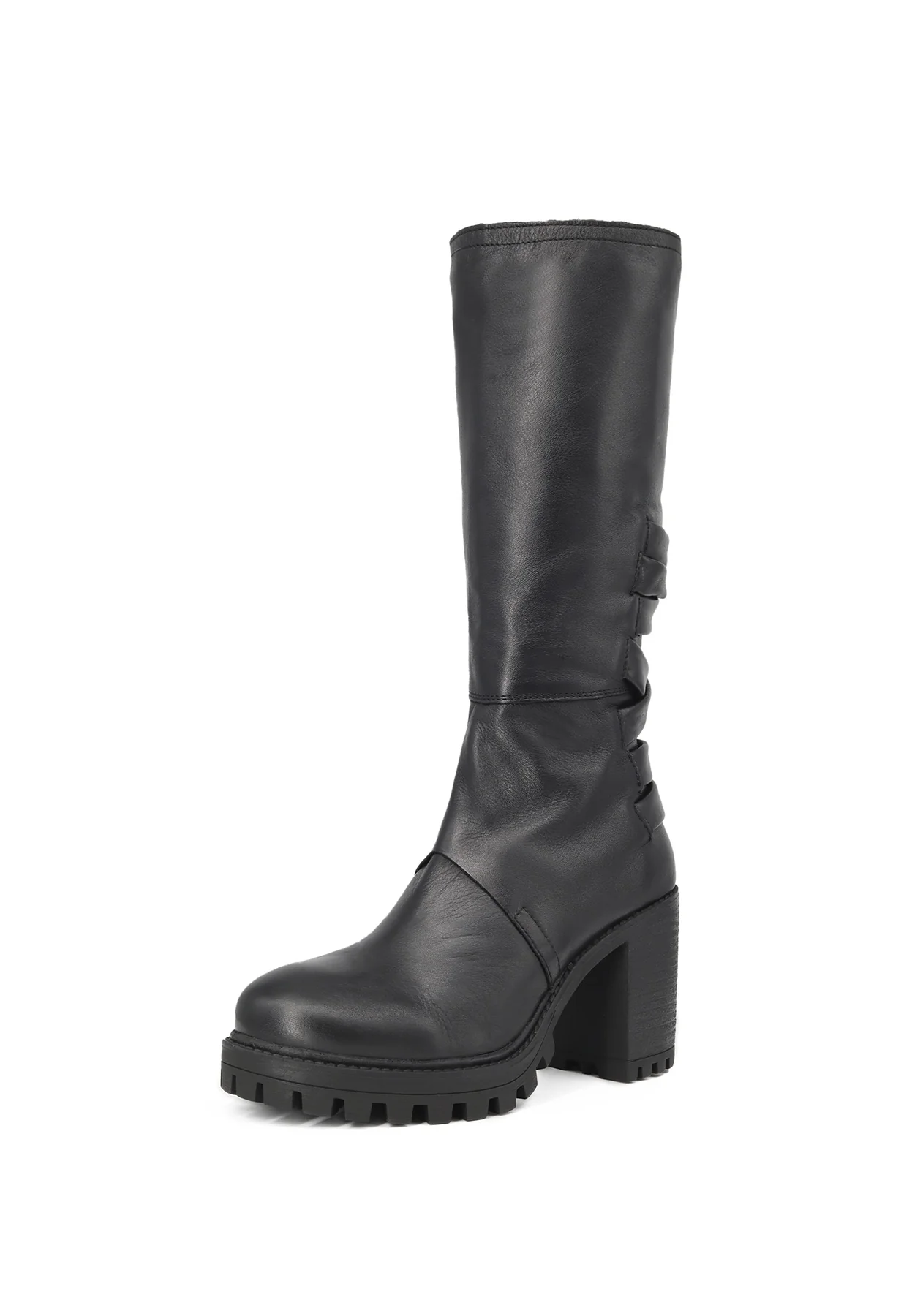 Stivale alto nero in vera pelle con tacco largo QH22 L-317