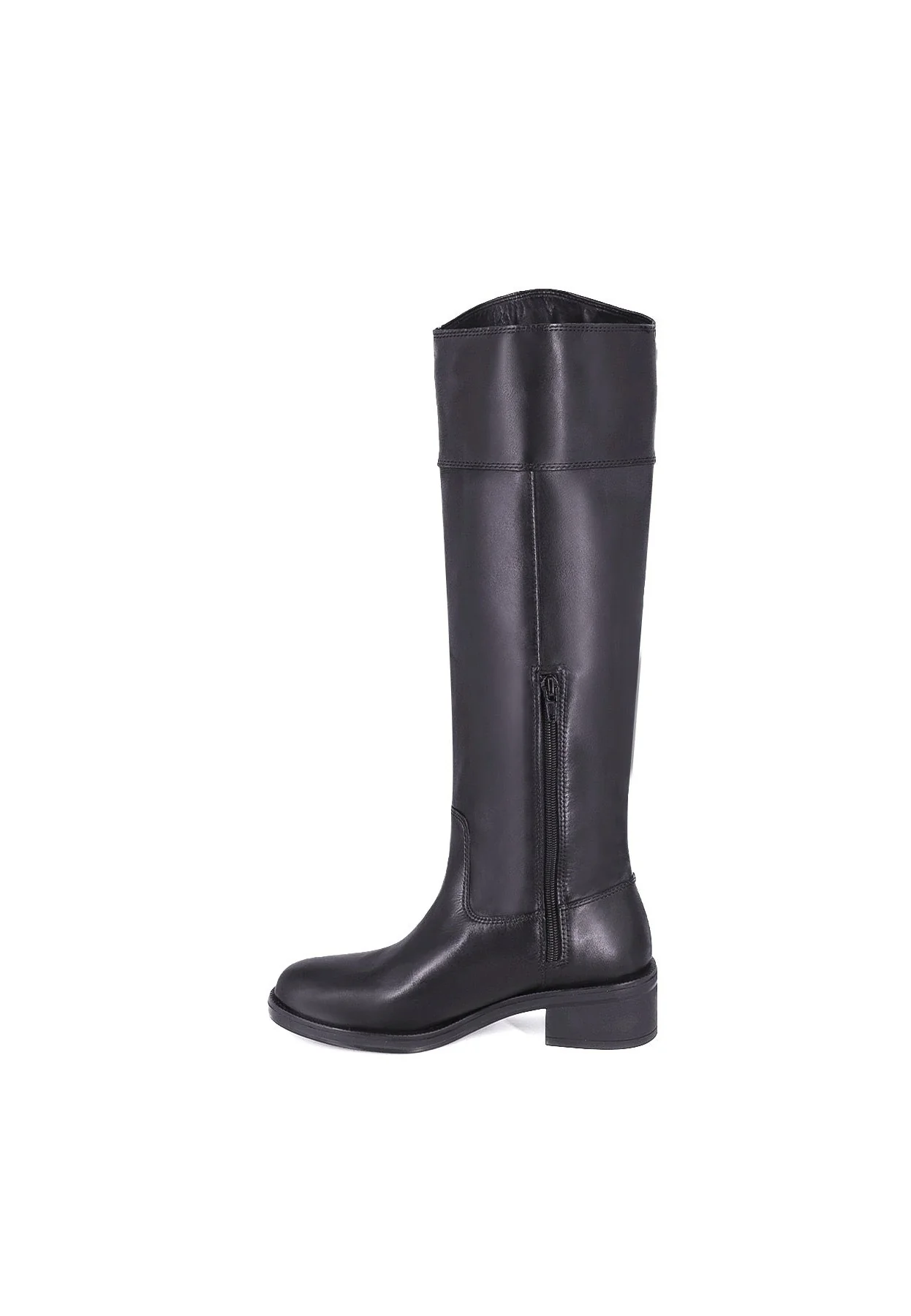 Stivali neri alti in vera pelle con tacco basso QH22 L320