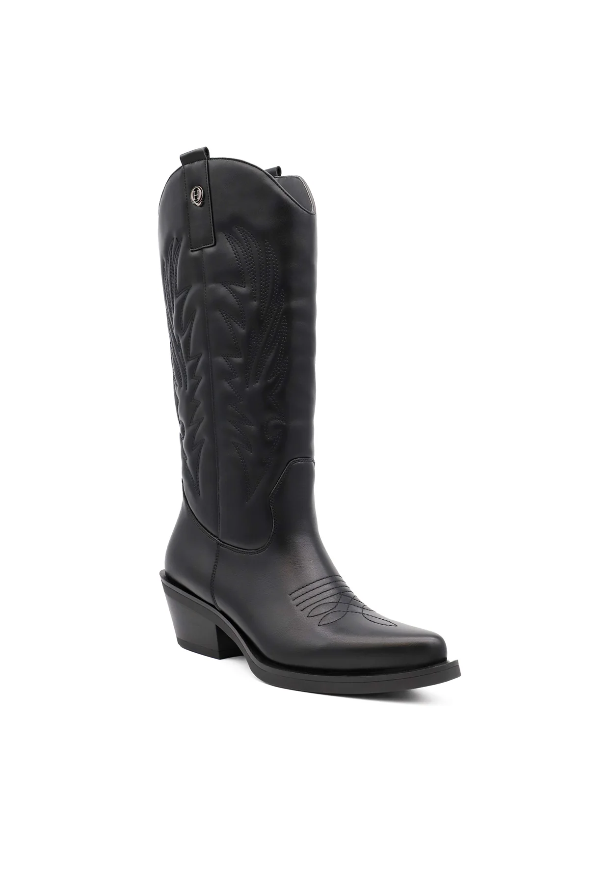 Il modello X28-110 unisce il fascino del classico stivale texano alla praticità di una calzatura confortevole e moderna. La tomaia nera presenta ricami decorativi che richiamano lo stile western, mentre la punta leggermente squadrata e il tacco comodo donano carattere senza rinunciare alla comodità.